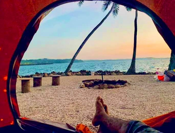 🌟 Camping: දූපත උඩ කූඩාරම් ගහගෙන නිදාගැනීම.