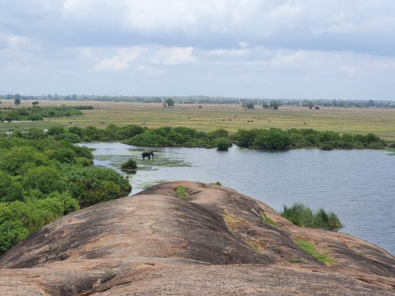 The area is a beautiful mix of a sandy beach, a calm lagoon, and a rocky hill that you can easily climb. It is much quieter than the main Arugam Bay beach, making it a favorite spot for travelers who want to enjoy nature without the crowds. From the top of the rock, you get a 360-degree view of the ocean, the jungle, and the nearby lagoons.