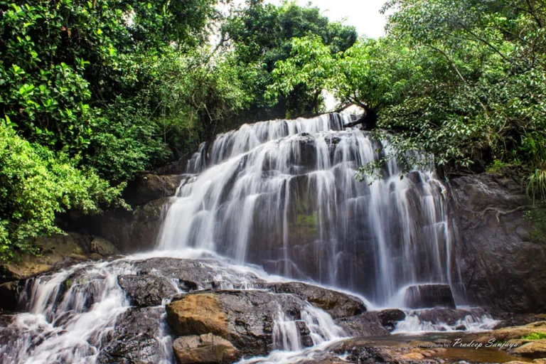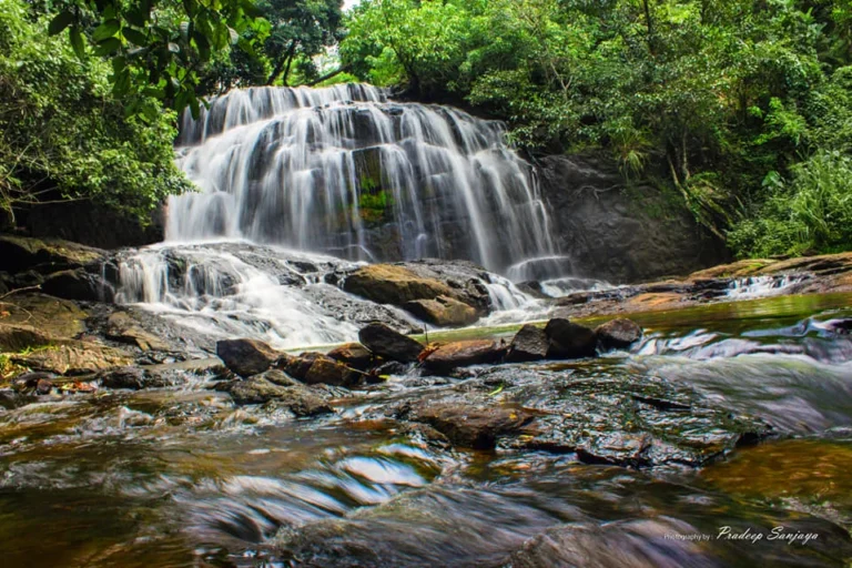 ✅ ඡායාරූප ගැනීමට: කළු පැහැති ගල් සහ අවට ඇති තද කොළ පැහැති ගස් මැදින් වැටෙන දිය ඇල්ල ඡායාරූප ගැනීමට ඉතා අපූරු දසුනකි.