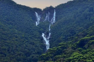 Devon Falls, known as the “Veil of the Valley,” is a breathtaking waterfall in the scenic highlands of Sri Lanka. Standing tall at 97 meters,