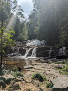 Visitors will feel a sense of calm and wonder. The mist from the falling water and the sound of the seven layers crashing down create a very relaxing atmosphere. It feels like a hidden gem tucked away from the busy city life.