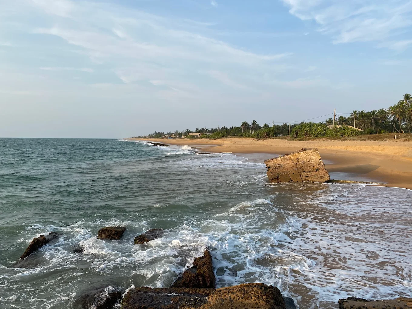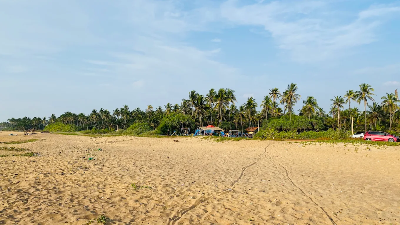↔️ වෙරළ දිගේ ඇද ඇති “මාදැල්” සහ ලීයෙන් කළ ධීවර බෝට්ටු මෙහි නිතර දකින්නට ලැබේ. එසේම, වෙරළ අසලම සශ්රීක පොල් වතු පිහිටා තිබීම මෙයට තවත් ලස්සනක් එකතු කරයි.