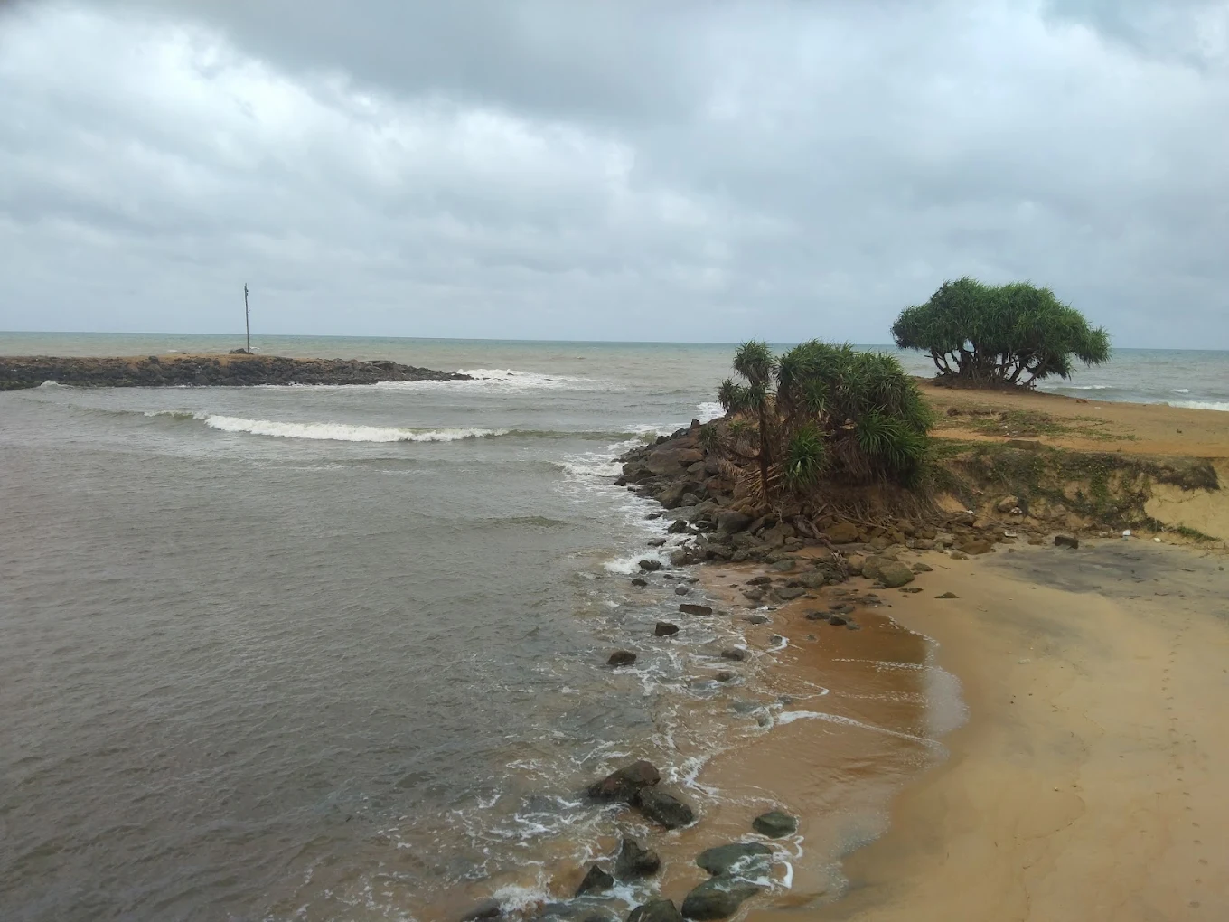 ↔️ ඇතැම් කාල වලදී මුහුදු ඛාදනය වැළැක්වීමට ඉදිකර ඇති ගල් වැටි ද මෙහිදී දැකගත හැකිය.
