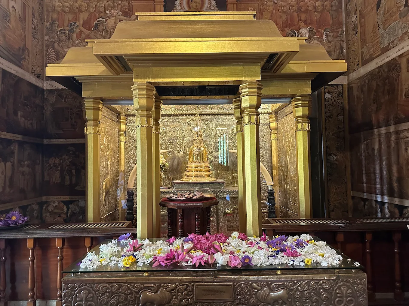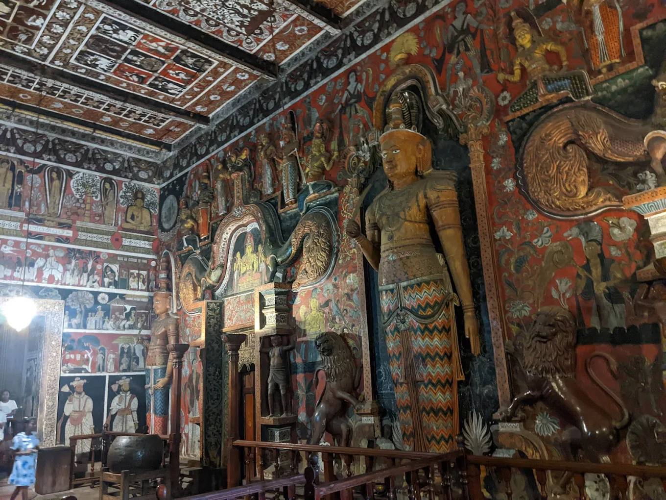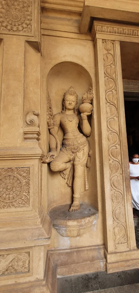 ↔️ History: The temple was destroyed many times by invaders in the past and was rebuilt later. The paintings you see today were mostly done in the early 20th century by a famous artist named Solias Mendis.