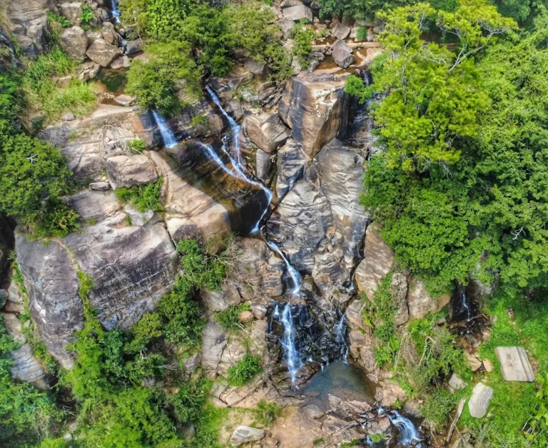 ⚠️ ලිස්සන සුළුයි: ගල් පර්වත තෙත නිසා ලිස්සන්න පුළුවන්. ඒ නිසා අනවශ්ය විදියට දිය ඇල්ලේ ගල් උඩට නගින්න යන්න එපා.