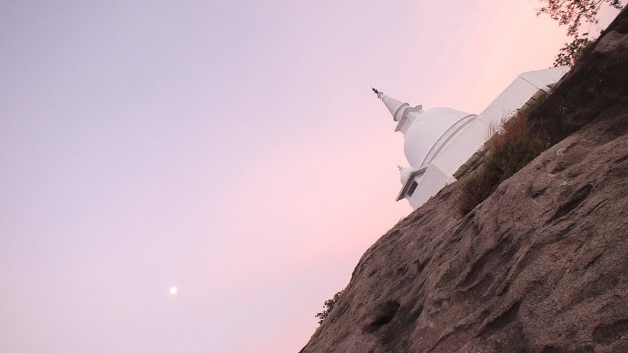 ✅ඡායාරූප ගැනීම: පර්වතය මුදුනේ ඇති සුදු පැහැති චෛත්‍යය සහ එතැනට පෙනෙන ලස්සන හිරු බැස යන දර්ශනය ඡායාරූපයට නැගීම.