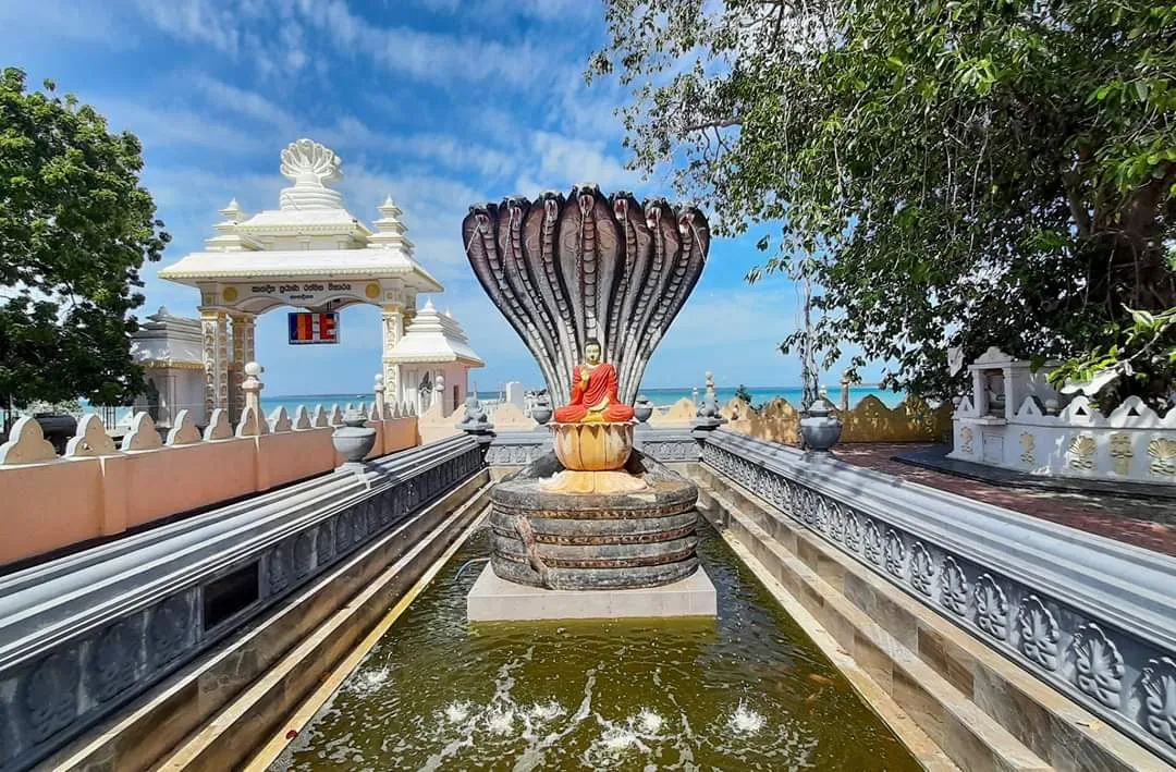 Nagadeepa Purana Vihara is a very famous and ancient Buddhist temple in Sri Lanka. It is located on a small island called Nainativu, which is off the coast of the Jaffna Peninsula. This place is very special because it is one of the 16 most sacred Buddhist places (Solosmasthana) in the country. The temple sits close to the blue ocean, making it a beautiful and peaceful spot. It marks the place where Lord Buddha visited Sri Lanka for the second time.