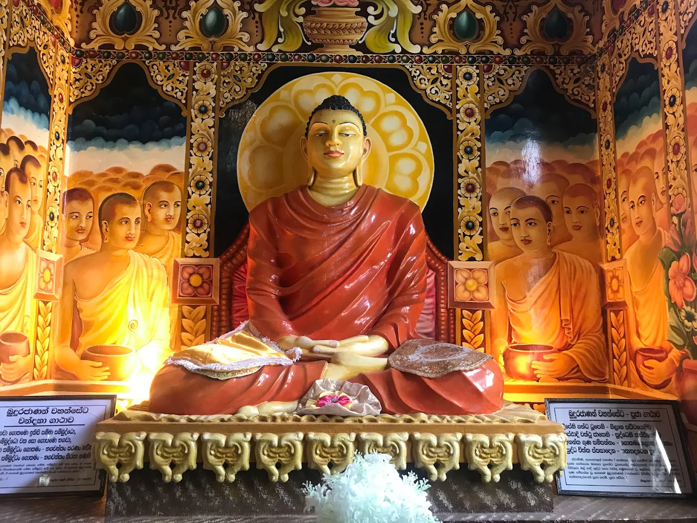 ⚠️ ඇඳුම් පැළඳුම්: පූජනීය ස්ථානයක් බැවින් සුදු හෝ ලා පැහැති ඇඳුම් අඳින්න. උරහිස් සහ දණහිස් ආවරණය වන පරිදි ඇඳීමට වග බලාගන්න. පන්සලට ඇතුළු වීමට පෙර පාවහන් සහ තොප්පි ගලවන්න.