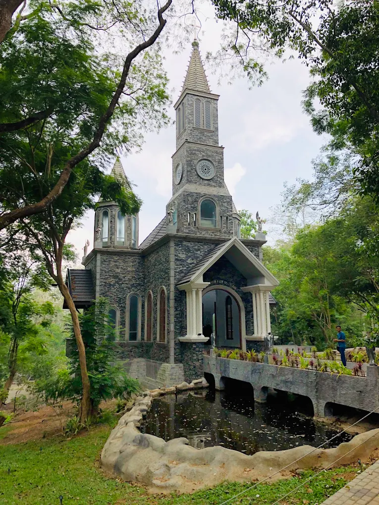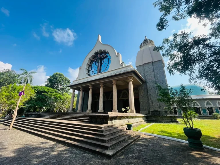 The National Basilica of Our Lady of Lanka is a very special Roman Catholic church located in Tewatte, a quiet area near Ragama. It is not just an ordinary church; it is the only “Basilica” (a very important type of church) in all of Sri Lanka! The building looks quite different from European churches because it mixes local Sri Lankan, Indian, and Western building styles. It sits on a large, green land filled with shady trees like Neem and Na, making it a calm place to relax and pray.
