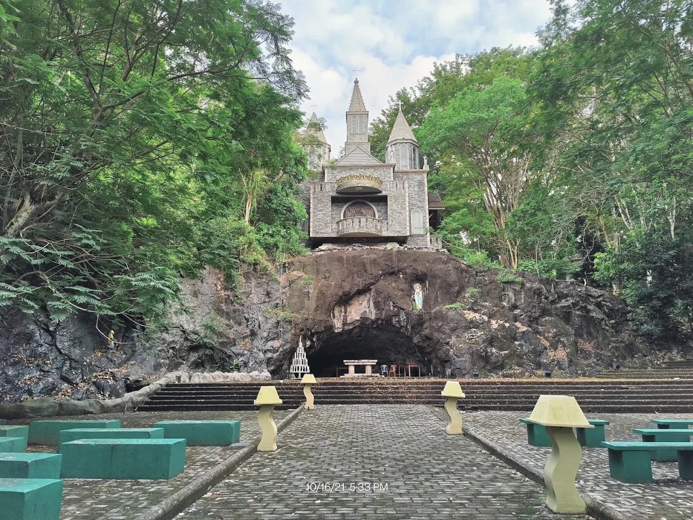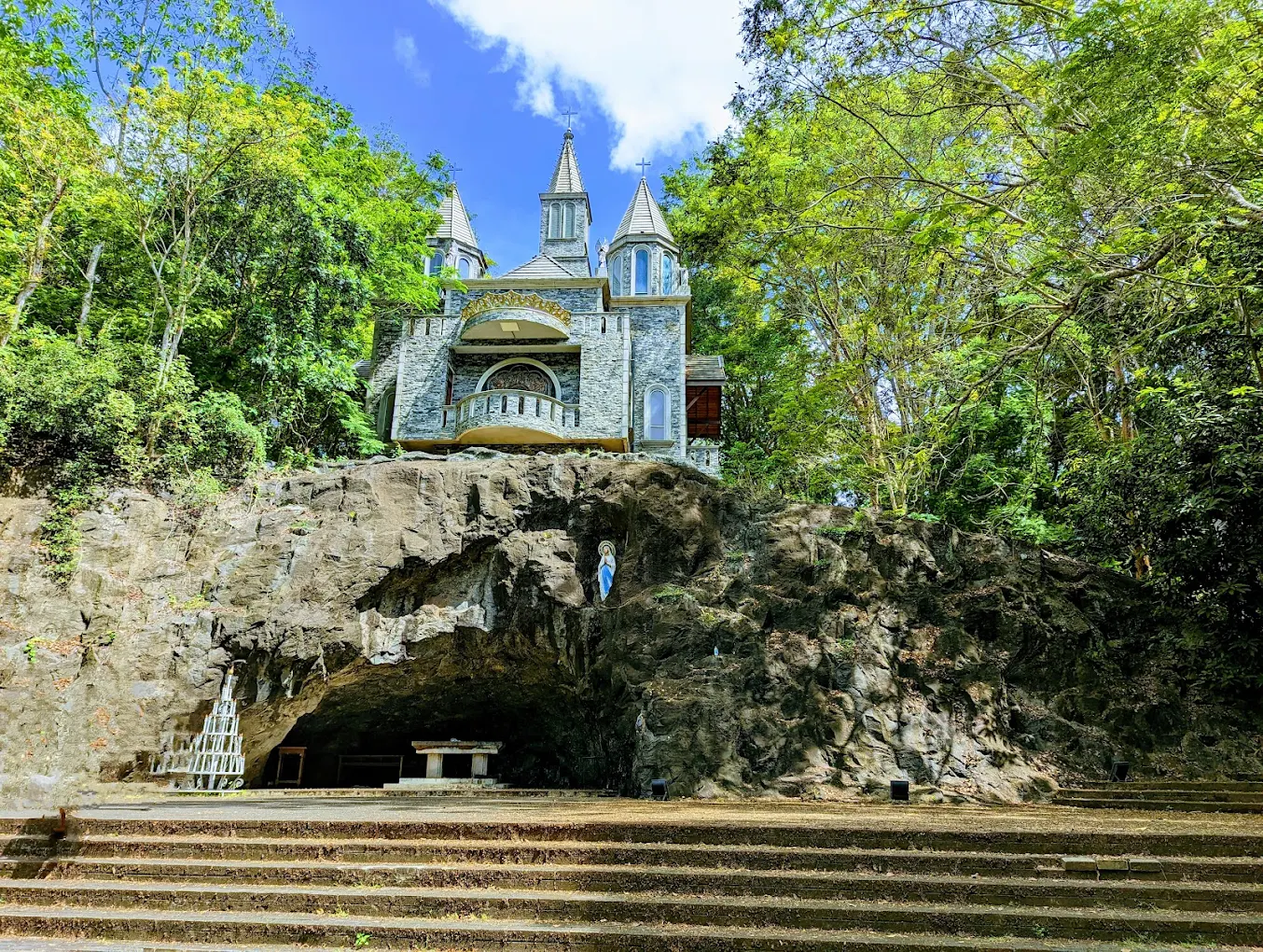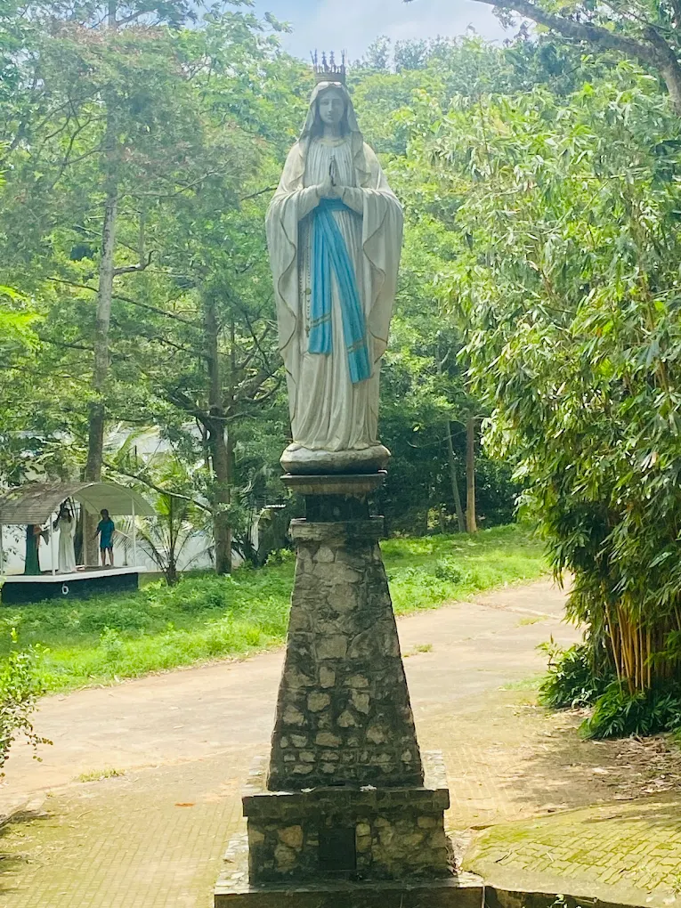 🌟 ගල් ගුහාව (Grotto): ප්රංශයේ ලූර්දු නුවර ගුහාව සිහිගන්වන අයුරින් තනා ඇති ගල් ගුහාව වෙත යාම.