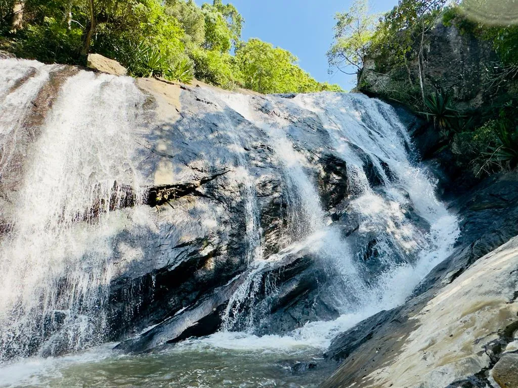 A majestic tiered waterfall in Nuwara Eliya, admired for its powerful cascades, cool mist, and breathtaking highland scenery.