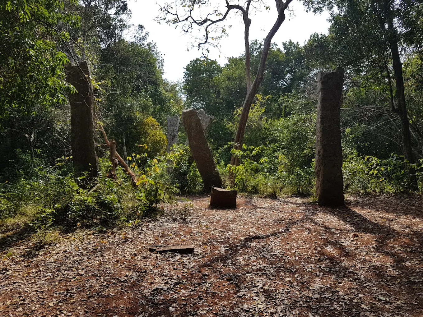 ↔️ වනාන්තරය මැද තිබුණත්, මෙම ගල් කුළුණු අදටත් ශක්තිමත්ව පවතී.