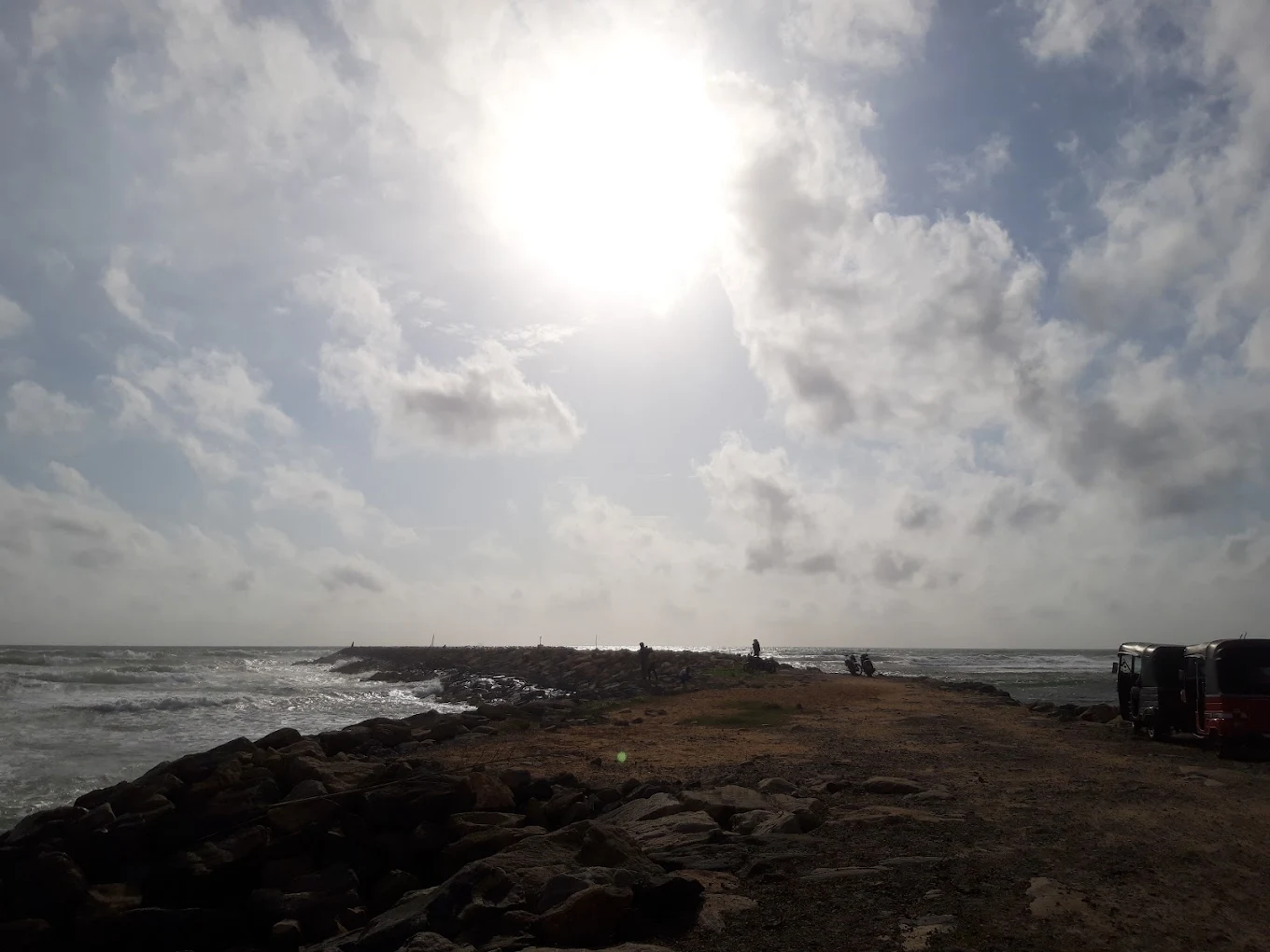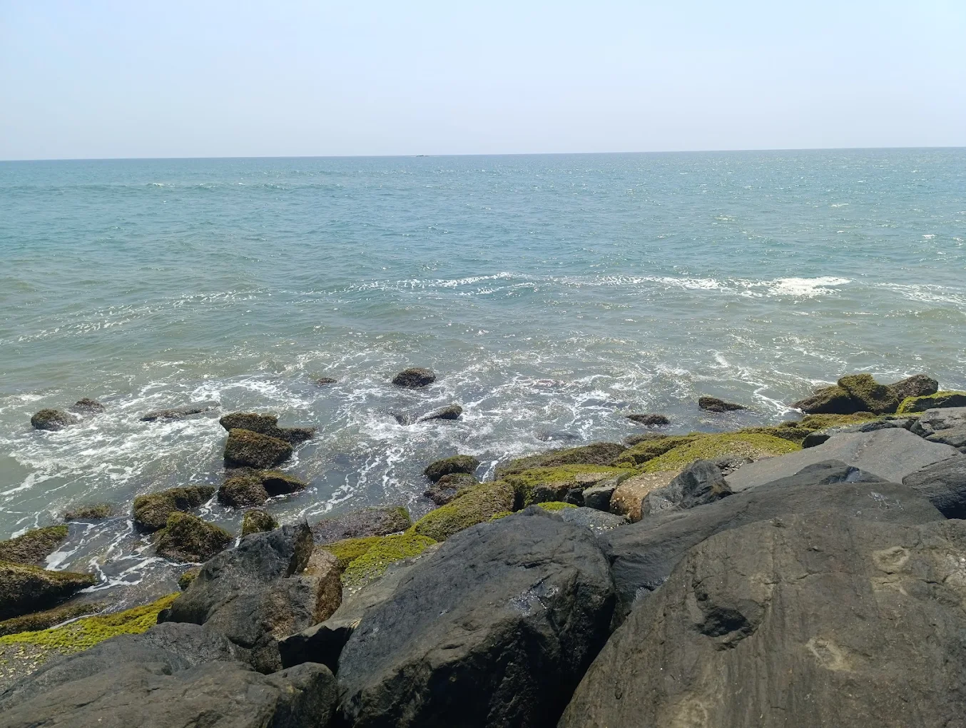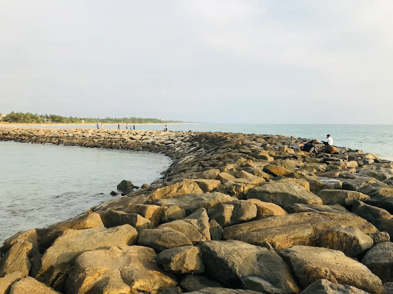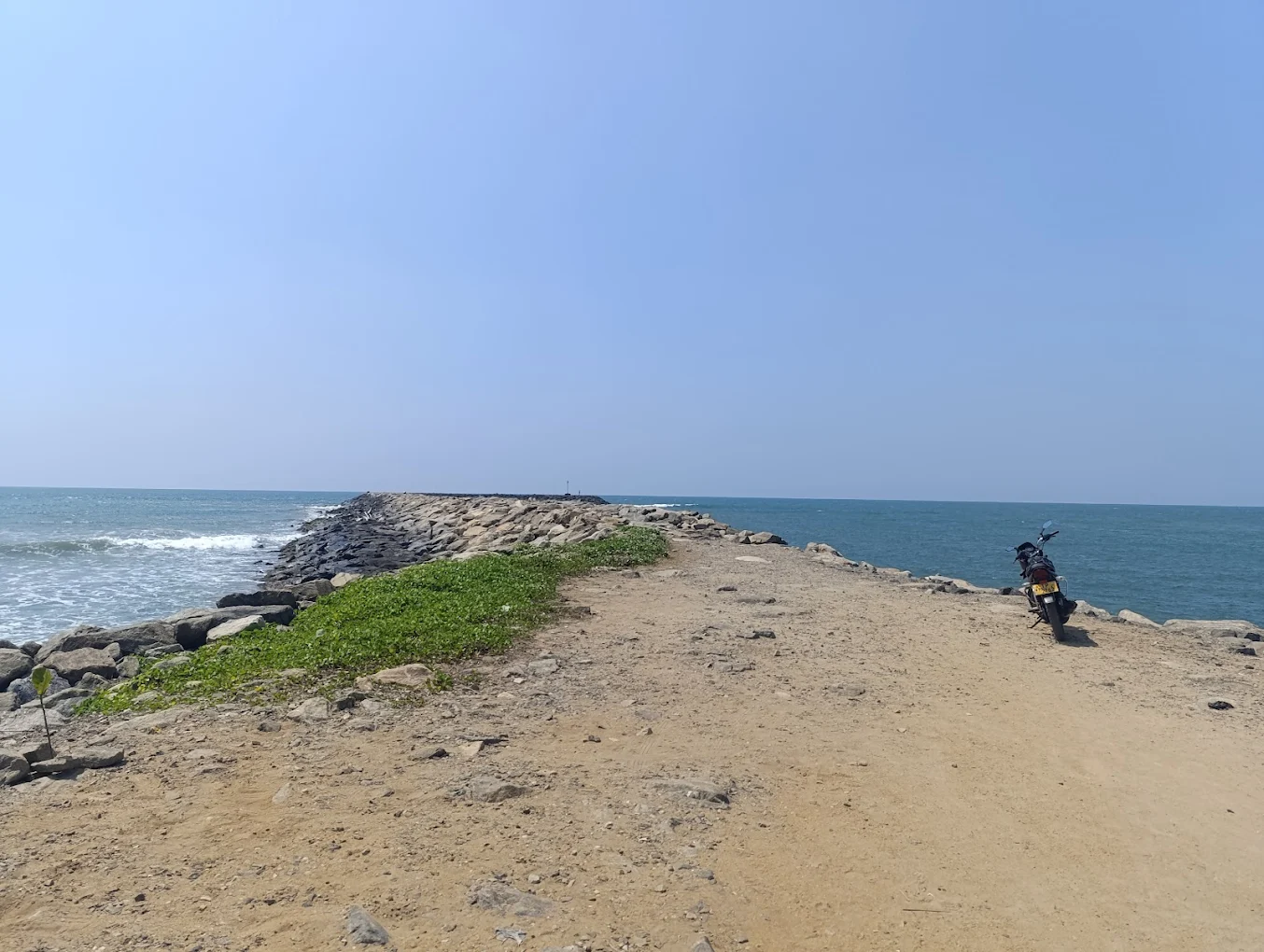 Visiting the breakwater is a very calming experience. You will hear the loud, rhythmic sound of the waves hitting the rocks and see the vast horizon. It feels very open and free. You get to see a mix of nature and local life, with families playing on the sand and the river water mixing with the salty sea.