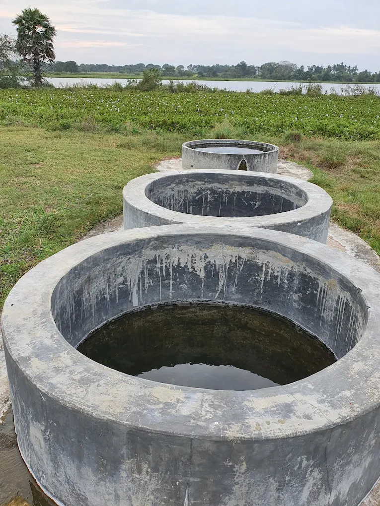↔️ ව්‍යුහය: මෙතන උල්පත් කිහිපයක් තියෙනවා. නරඹන්නන්ගේ පහසුවට සිමෙන්ති බාවිතා කරලා ළිං වගේ පොඩි බැමි මේ වටේට බැඳලා තියෙනවා.