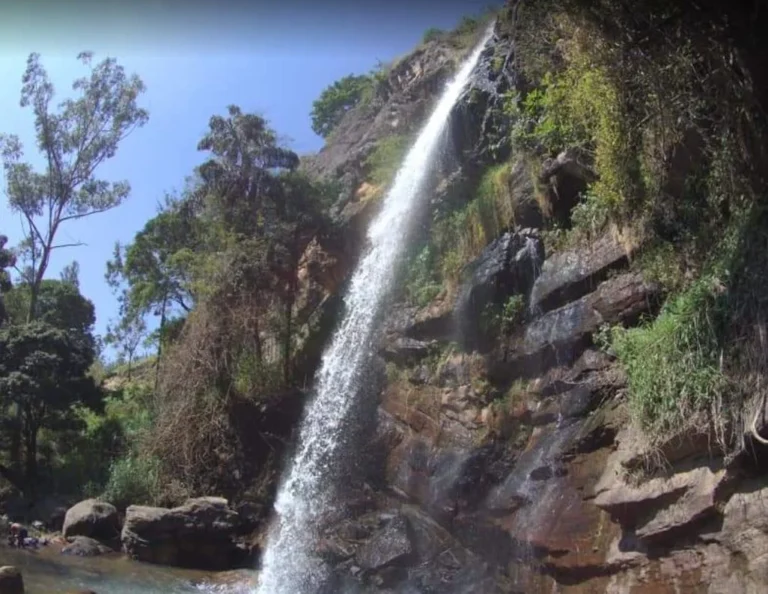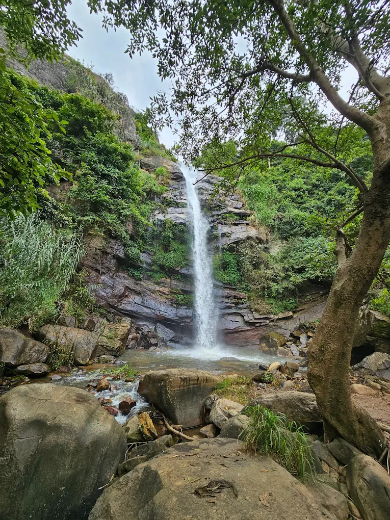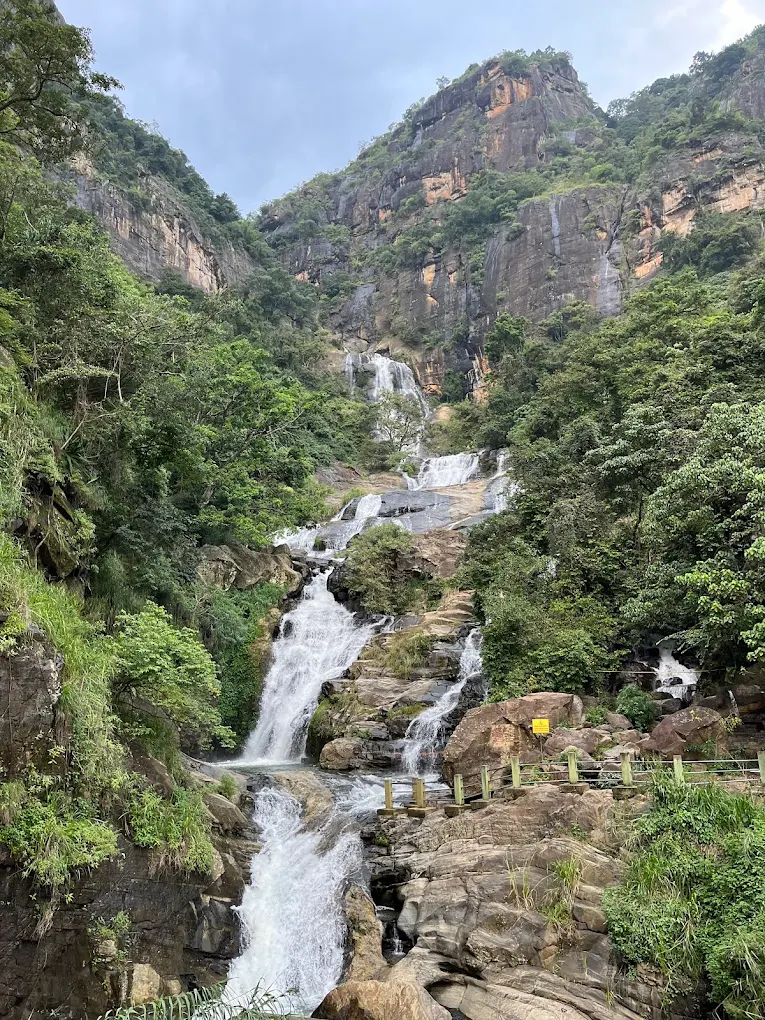 A majestic tiered waterfall in Nuwara Eliya, admired for its powerful cascades, cool mist, and breathtaking highland scenery.