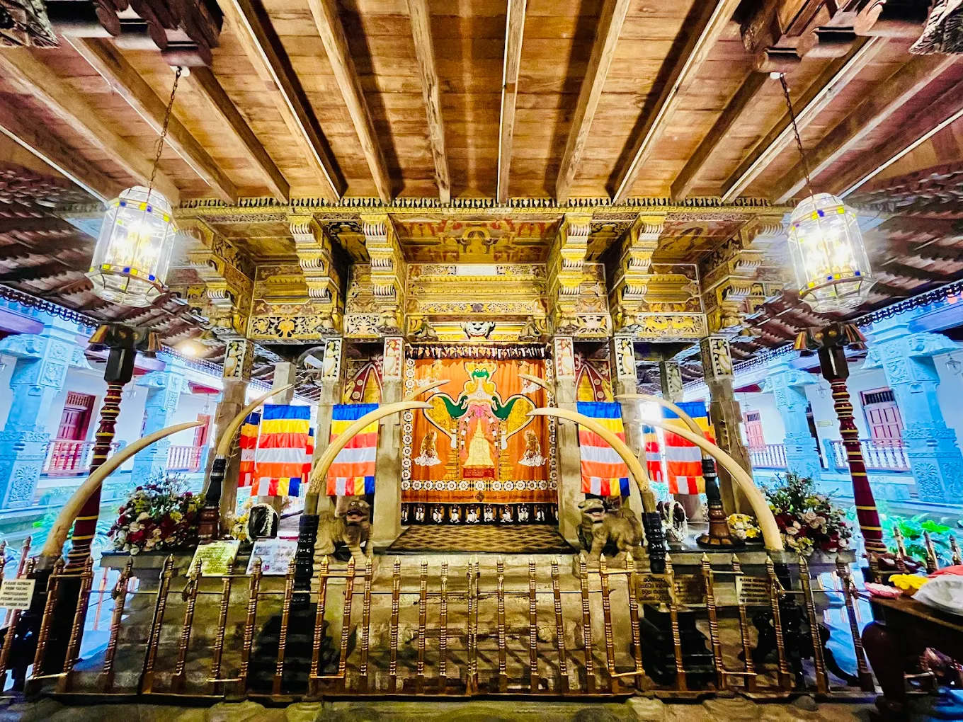 ↔️ The actual Tooth Relic is kept inside seven golden caskets shaped like stupas, so you usually see the outer casket rather than the tooth itself.