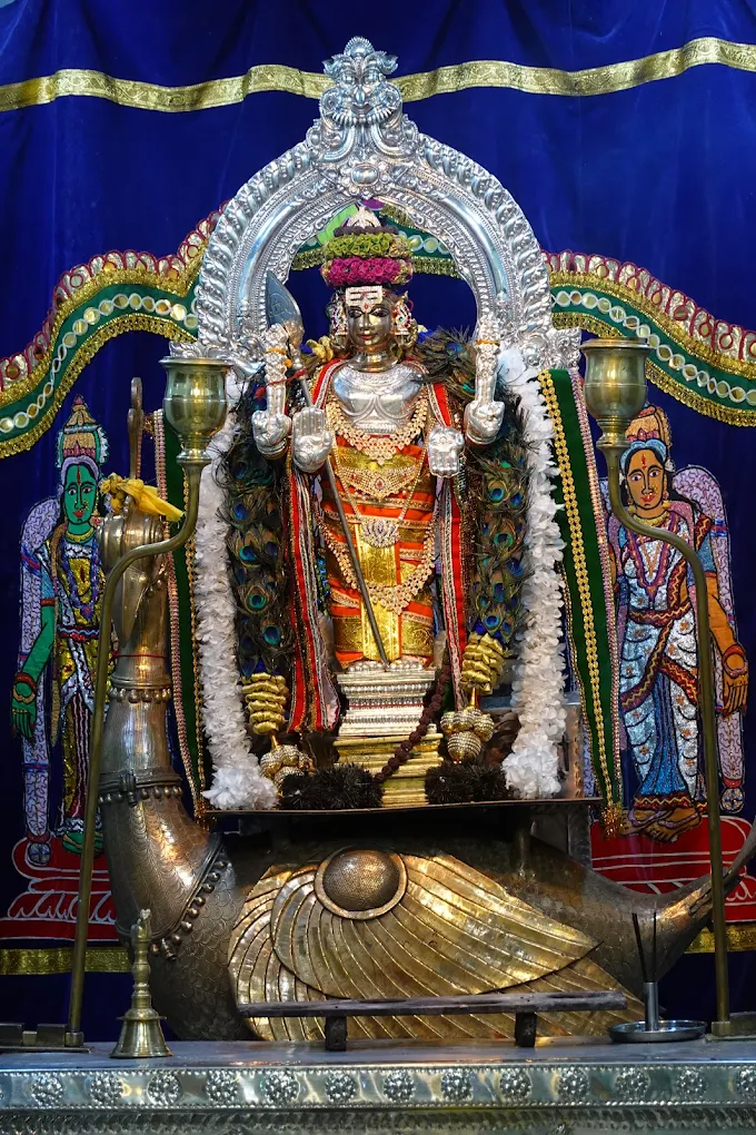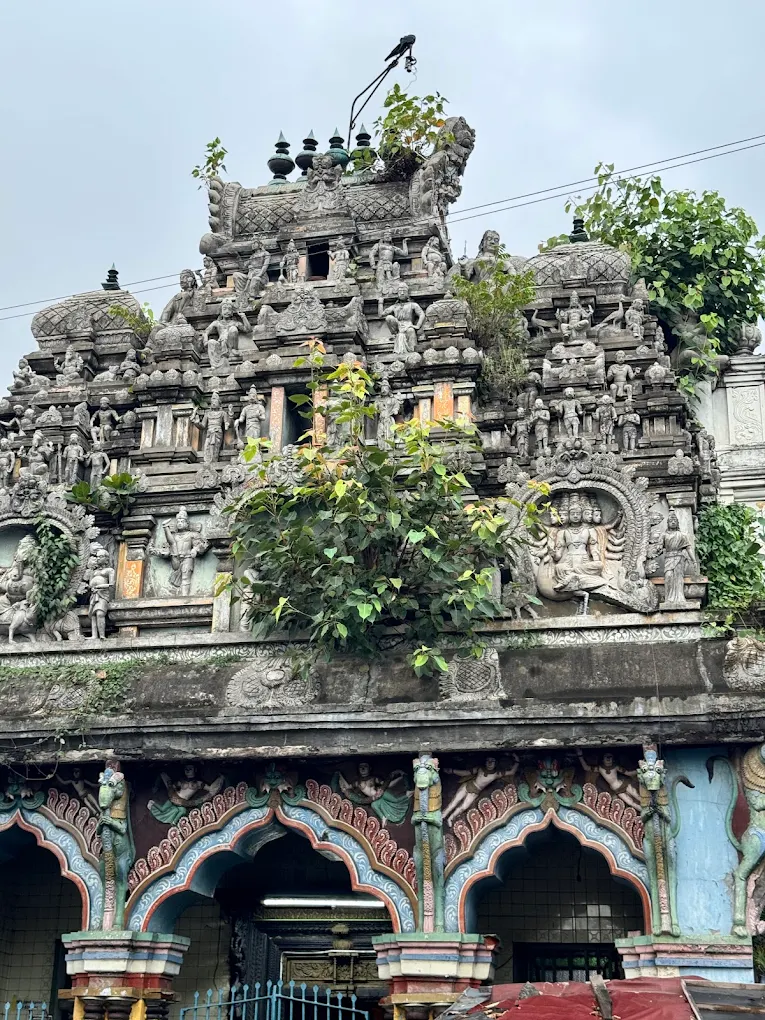 ↔️ ද්රවිඩ ගෘහ නිර්මාණ ශිල්පය: මෙය දකුණු ඉන්දියානු ක්රමයට නිර්මාණය කර ඇත. මෙහි ඇති “ගෝපුරය” (ඇතුල්වීමේ ඇති වර්ණවත් උස කුළුණ) ඉතාමත් ආකර්ෂණීයයි.