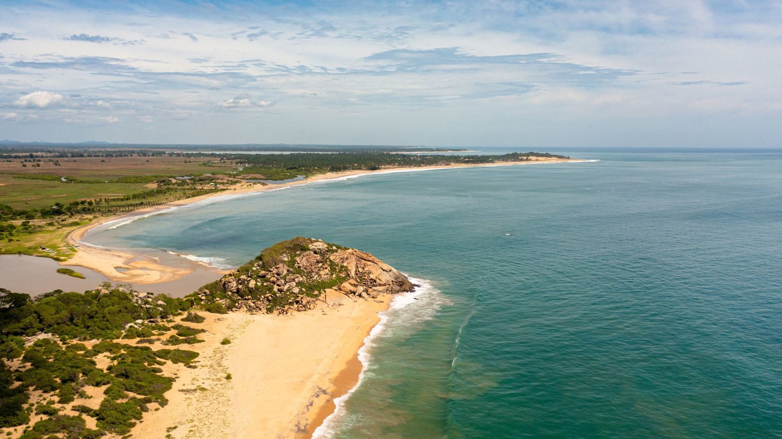 Whisky Point is a famous beach located in Pottuvil, very close to the popular Arugam Bay on the East Coast of Sri Lanka. It is known for its beautiful sandy shores and a large rock formation that sits right by the sea. This spot is much quieter than the main Arugam Bay area, making it a perfect place for people who want to enjoy the ocean without huge crowds. The beach has a very relaxed and tropical feel, with plenty of palm trees and small cabanas lining the coast.