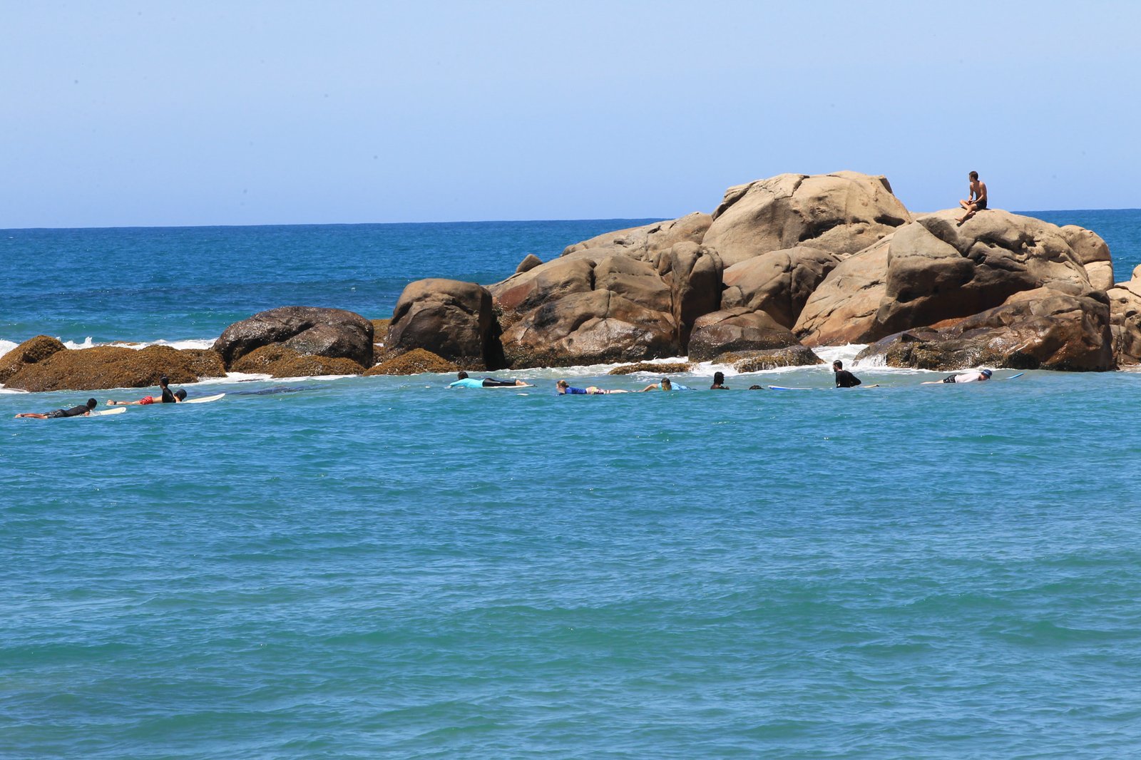 🌟The Iconic Rock: There is a big rock that people love to climb to get a better view of the surfers and the vast blue sea.